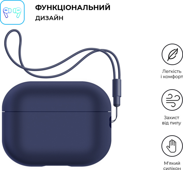 - Чехол ArmorStandart Silicone Case with straps для Apple Airpods Pro 2 Dark Blue (ARM68609)