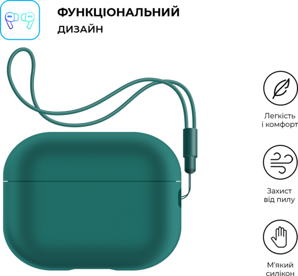 - Чехол ArmorStandart Silicone Case with straps для Apple Airpods Pro 2 Dark Green (ARM68612)