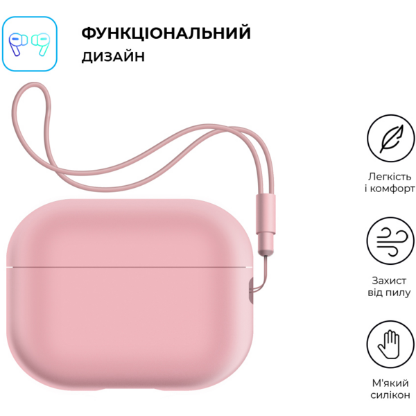 - Чехол ArmorStandart Silicone Case with straps для Apple Airpods Pro 2 Pink (ARM68616)