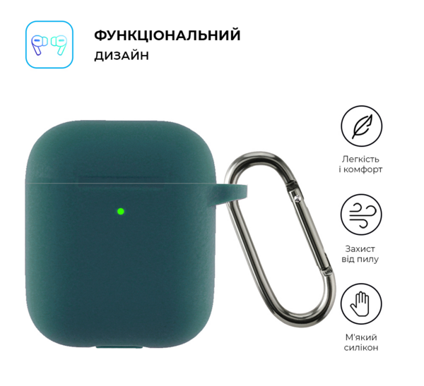 - Чехол ArmorStandart Ultrathin Silicone Case With Hook для Apple AirPods 2 Atrovirens (ARM59678)