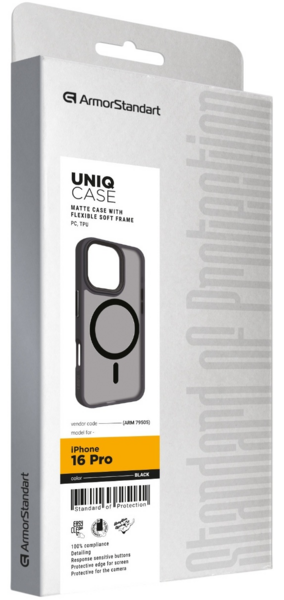 - Чехол ArmorStandart Uniq MagSafe для Apple iPhone 16 Pro Black (ARM79505)
