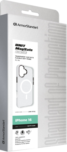 - Чехол ArmorStandart Unit MagSafe для Apple iPhone 16 Matte Clear (ARM78705)