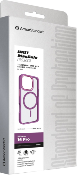- Чехол ArmorStandart Unit MagSafe для Apple iPhone 16 Pro Violet (ARM78723)