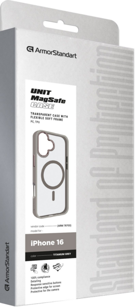 - Чехол ArmorStandart Unit MagSafe для Apple iPhone 16 Titanium Grey (ARM78703)