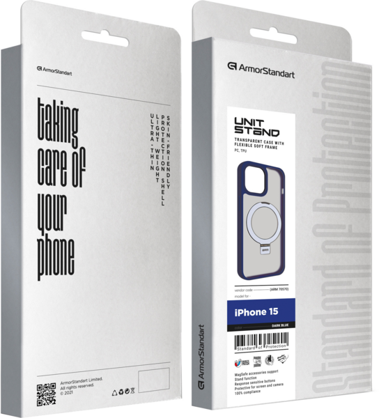 - Чехол ArmorStandart Unit Stand для Apple iPhone 15 Dark Blue (ARM70570)