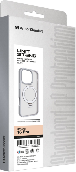 - Чехол ArmorStandart Unit Stand для Apple iPhone 16 Pro Grey (ARM78735)