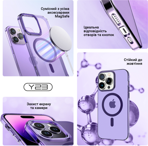 - Чехол ArmorStandart Y23 MagSafe для Apple iPhone 15 Transparent Purple (ARM68567)