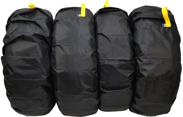 Комплект состоит с 4 чехлов. Защитные чехлы для сезонного хранения шин и колес автомобиля. Это оптимальное решение для защиты ваших запасок, потому что они эффективно защищены от загрязнения и возможных царапин. Очень легко одеваются и снимаются. Изготовленные из прочного, труднопромакаемого и дышащего материала. Материал - Oxford 190D.