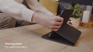 Фолиант Primo также служит подставкой: просто сложите чехол, чтобы получить нужный угол обзора для просмотра фильма или веб-страниц.