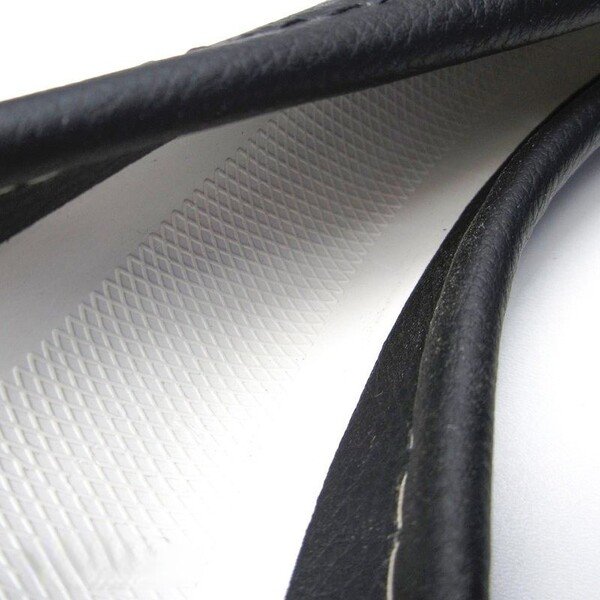 На внутренней части основы чехла имеется рифлёный протектор обеспечивающий большее сцепление чехла с рулем и защищающий от проскальзывания. Основа изготовлена из прочной, цельной резины, не пересыхает, не растрескивается.