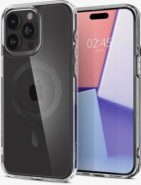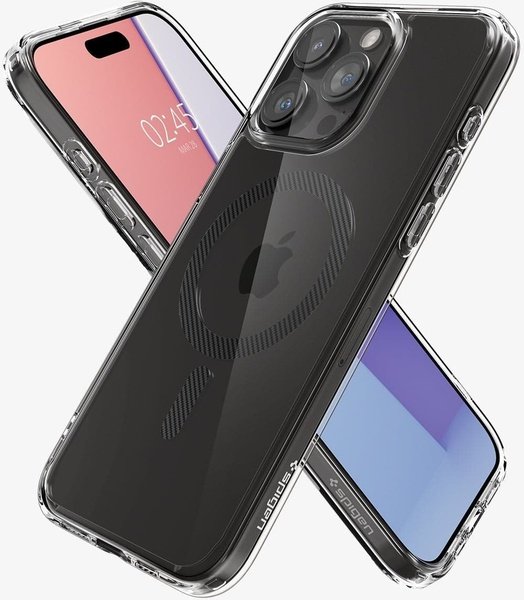 - Чехол Spigen для Apple iPhone 15 Pro Max Ultra Hybrid MagFit, Carbon Fiber (ACS06578)