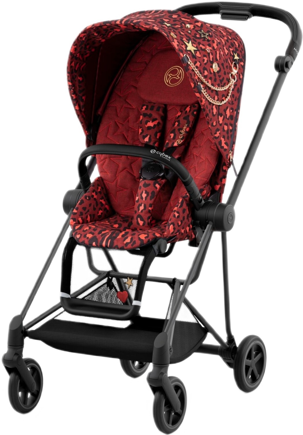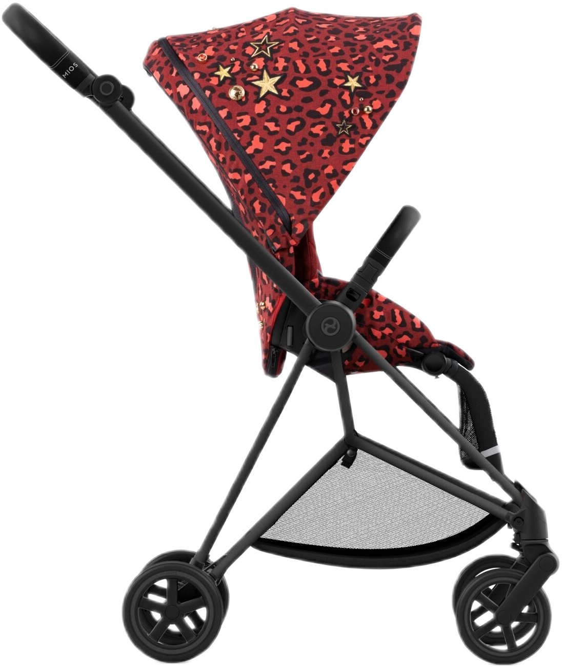 Mios из коллекции Rockstar — потрясающий дизайн вдохновленный миром рок-музыки — с леопардовым принтом, золотистыми нашивками, шпильками и классическими панк-цепочками. Текстиль легко надеть на каркас прогулочного блока, застегнуть все молнии и кнопки. Прикрепить капюшон.