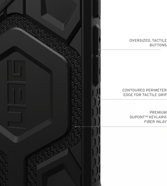 - Чехол UAG для Apple iPhone 16 Monarch Pro Magsafe, Kevlar Black (114458113940)
