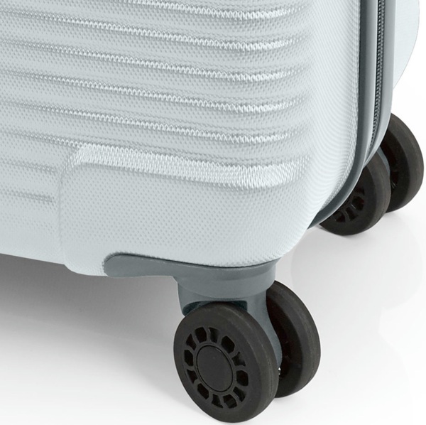 Чемодан Gabol Balance XP оснащен четырьмя колесами с возможностью независимого разворота каждого колеса на 360°. Система предусматривает равномерное перераспределение нагрузки на каждое колесо, что в свою очередь способствует плавному движению и маневренности чемодана, прилагая при этом минимум усилий. Колеса изготовлены из высокотемпературного термопластичного полиуретана (TPU). Материал обладает прочностью сравнимой с пластиком, гибкостью силикона, а также повышенной устойчивостью к перепадам температуры. Отличительной особенностью колес из TPU материала является снижение шума до минимума при движении чемодана по неровной поверхности. Благодаря устойчивости к истиранию, материал колес отличается длительным сроком эксплуатации.