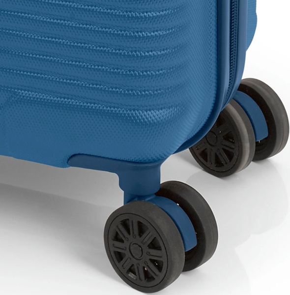 Чемодан Gabol Balance XP оснащен четырьмя колесами с возможностью независимого разворота каждого колеса на 360°. Система предусматривает равномерное перераспределение нагрузки на каждое колесо, что в свою очередь способствует плавному движению и маневренности чемодана, прилагая при этом минимум усилий. Колеса изготовлены из высокотемпературного термопластичного полиуретана (TPU). Материал обладает прочностью сравнимой с пластиком, гибкостью силикона, а также повышенной устойчивостью к перепадам температуры. Отличительной особенностью колес из TPU материала является снижение шума до минимума при движении чемодана по неровной поверхности. Благодаря устойчивости к истиранию, материал колес отличается длительным сроком эксплуатации.