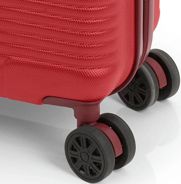 Чемодан Gabol Balance XP оснащен четырьмя колесами с возможностью независимого разворота каждого колеса на 360°. Система предусматривает равномерное перераспределение нагрузки на каждое колесо, что в свою очередь способствует плавному движению и маневренности чемодана, прилагая при этом минимум усилий. Колеса изготовлены из высокотемпературного термопластичного полиуретана (TPU). Материал обладает прочностью сравнимой с пластиком, гибкостью силикона, а также повышенной устойчивостью к перепадам температуры. Отличительной особенностью колес из TPU материала является снижение шума до минимума при движении чемодана по неровной поверхности. Благодаря устойчивости к истиранию, материал колес отличается длительным сроком эксплуатации.