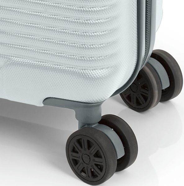 Чемодан Gabol Balance XP оснащен четырьмя колесами с возможностью независимого разворота каждого колеса на 360°. Система предусматривает равномерное перераспределение нагрузки на каждое колесо, что в свою очередь способствует плавному движению и маневренности чемодана, прилагая при этом минимум усилий. Колеса изготовлены из высокотемпературного термопластичного полиуретана (TPU). Материал обладает прочностью сравнимой с пластиком, гибкостью силикона, а также повышенной устойчивостью к перепадам температуры. Отличительной особенностью колес из TPU материала является снижение шума до минимума при движении чемодана по неровной поверхности. Благодаря устойчивости к истиранию, материал колес отличается длительным сроком эксплуатации.