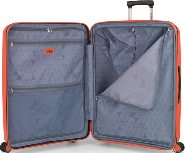 Чемодан Gabol Brooklyn (L) Coral (123947-036) воплощает в себе легкость и надежность, а насыщенный цвет и современный дизайн придают ему исключительности. Корпус чемоданов серии Brooklyn изготовлен из полипропилена. Этот материал сочетает в себе максимальную легкость, устойчивость к деформациям, выгоранию и механическим повреждениям. Внутреннее пространство разделено на два отделения перегородкой, которая имеет карман на молнии. Благодаря функции расширения возможно увеличить объем чемодана до 119,6 литров и разместить еще больше необходимых вещей. Чемодан оснащен четырьмя сдвоенными колесами с возможностью разворота на 360°. Конструкция обеспечивает равномерное перераспределение нагрузки на каждое колесо, что способствует плавному движению и маневренности чемодана. Колеса изготовлены из термопластичного полиуретана (TPU). Этот материал обладает прочностью сравнимой с пластиком, гибкостью силикона, а также повышенной устойчивостью к перепадам температуры и истиранию. Благодаря этому колеса имеют длительный срок эксплуатации. Отличительной особенностью колес из TPU-материала является снижение шума до минимума при движении чемодана по неровной поверхности.