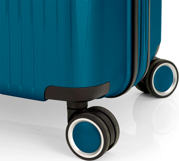 Чемодан Gabol Brooklyn (S) Turquoise (123922-018) воплощает в себе легкость и надежность, а насыщенный цвет и современный дизайн придают ему исключительности. Корпус чемоданов серии Brooklyn изготовлен из полипропилена. Этот материал сочетает в себе максимальную легкость, устойчивость к деформациям, выгоранию и механическим повреждениям. Внутреннее пространство разделено на два отделения перегородкой, которая имеет карман на молнии. Благодаря функции расширения возможно увеличить объем чемодана до 47,4 литра и разместить еще больше необходимых вещей. Чемодан оснащен четырьмя сдвоенными колесами с возможностью разворота на 360°. Конструкция обеспечивает равномерное перераспределение нагрузки на каждое колесо, что способствует плавному движению и маневренности чемодана. Колеса изготовлены из термопластичного полиуретана (TPU). Этот материал обладает прочностью сравнимой с пластиком, гибкостью силикона, а также повышенной устойчивостью к перепадам температуры и истиранию. Благодаря этому колеса имеют длительный срок эксплуатации. Отличительной особенностью колес из TPU-материала является снижение шума до минимума при движении чемодана по неровной поверхности.