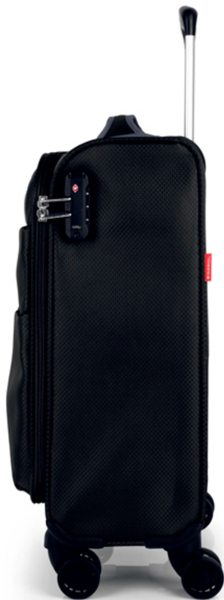 Чемодан Gabol Cloud (S) Black (114022-001) один из самых легких в своем классе. Модель оснащена кодовым замком TSA системы для повышения безопасности. Каркас дна легкий и прочный. На фронтальной части размещены два кармана на молнии. Внутреннее пространство имеет одно основное отделение с ремнями для фиксации вещей. Он легкий, манёвренный и удобный для транспортировки. Чемодан оснащен четырьмя колесами с возможностью разворота на 360°. Конструкция обеспечивает равномерное перераспределение нагрузки на каждое колесо, что способствует плавному движению и маневренности чемодана. Колеса изготовлены из термопластичного полиуретана (TPU). Этот материал обладает прочностью сравнимой с пластиком, гибкостью силикона, а также повышенной устойчивостью к перепадам температуры и истиранию. Благодаря этому колеса имеют длительный срок эксплуатации. Отличительной особенностью колес из TPU-материала является снижение шума до минимума при движении чемодана по неровной поверхности.