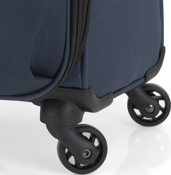 Чемодан Gabol Florida (M) Blue (123146-003) изготовлен из полиэстера и это отличный вариант для тканевого багажа. Внутреннее пространство имеет одно основное отделение с ремнями для фиксации вещей. Благодаря функции расширения возможно увеличить объем чемодана до 62,4 литра и разместить еще больше необходимых вещей. На фронтальной части размещены два кармана на молнии. Чемодан оснащен четырьмя колесами с возможностью разворота на 360°. Конструкция обеспечивает равномерное перераспределение нагрузки на каждое колесо, что способствует плавному движению и маневренности чемодана. Колеса изготовлены из термопластичного полиуретана (TPU). Этот материал обладает прочностью сравнимой с пластиком, гибкостью силикона, а также повышенной устойчивостью к перепадам температуры и истиранию. Благодаря этому колеса имеют длительный срок эксплуатации. Отличительной особенностью колес из TPU-материала является снижение шума до минимума при движении чемодана по неровной поверхности.