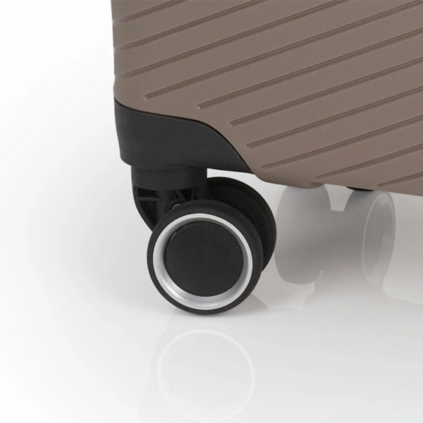 Чемодан Gabol Kume (S) Stone (123522-009) оснащен четырьмя сдвоенными колесами с возможностью независимого разворота на 360°. Конструкцией предусмотрено равномерное распределение нагрузки на каждое колесо, что способствует плавному движению и маневренности чемодана, прилагая при этом минимум усилий. Колеса изготовлены из высокотемпературного термопластичного полиуретана (TPU). Данный материал обладает прочностью сравнимой с пластиком, гибкостью силикона, а также повышенной устойчивостью к перепадам температуры. Отличительной особенностью колес из TPU является снижение шума до минимума во время движения чемодана. Благодаря устойчивости к истиранию, материал колес отличается длительным сроком эксплуатации.