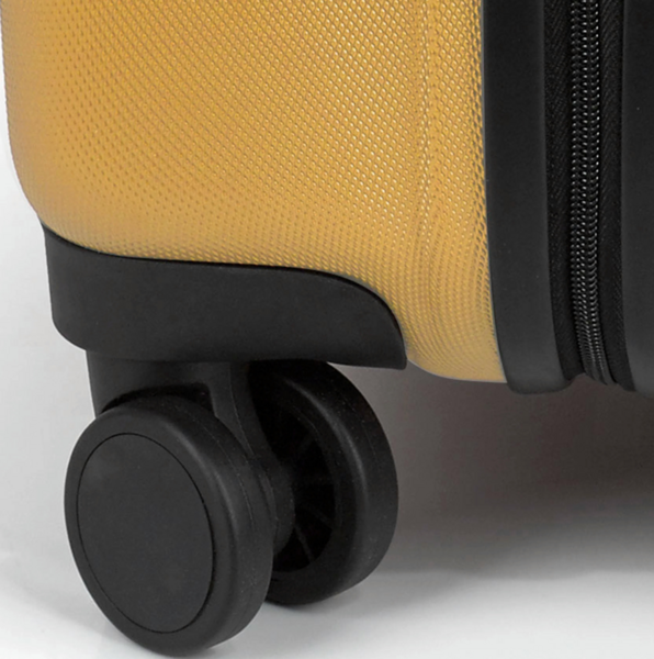 Чемодан Gabol Paradise XP оснащен четырьмя сдвоенными колесами с возможностью независимого разворота на 360°. Конструкцией предусмотрено равномерное распределение нагрузки на каждое колесо, что в свою очередь способствует плавному движению и маневренности чемодана, прилагая при этом минимум усилий. Колеса изготовлены из высокотемпературного термопластичного полиуретана (TPU). Данный материал обладает прочностью сравнимой с пластиком, гибкостью силикона, а также повышенной устойчивостью к перепадам температуры. Отличительной особенностью колес из TPU является снижение шума до минимума во время движения чемодана. Благодаря устойчивости к истиранию, материал колес отличается длительным сроком эксплуатации.