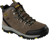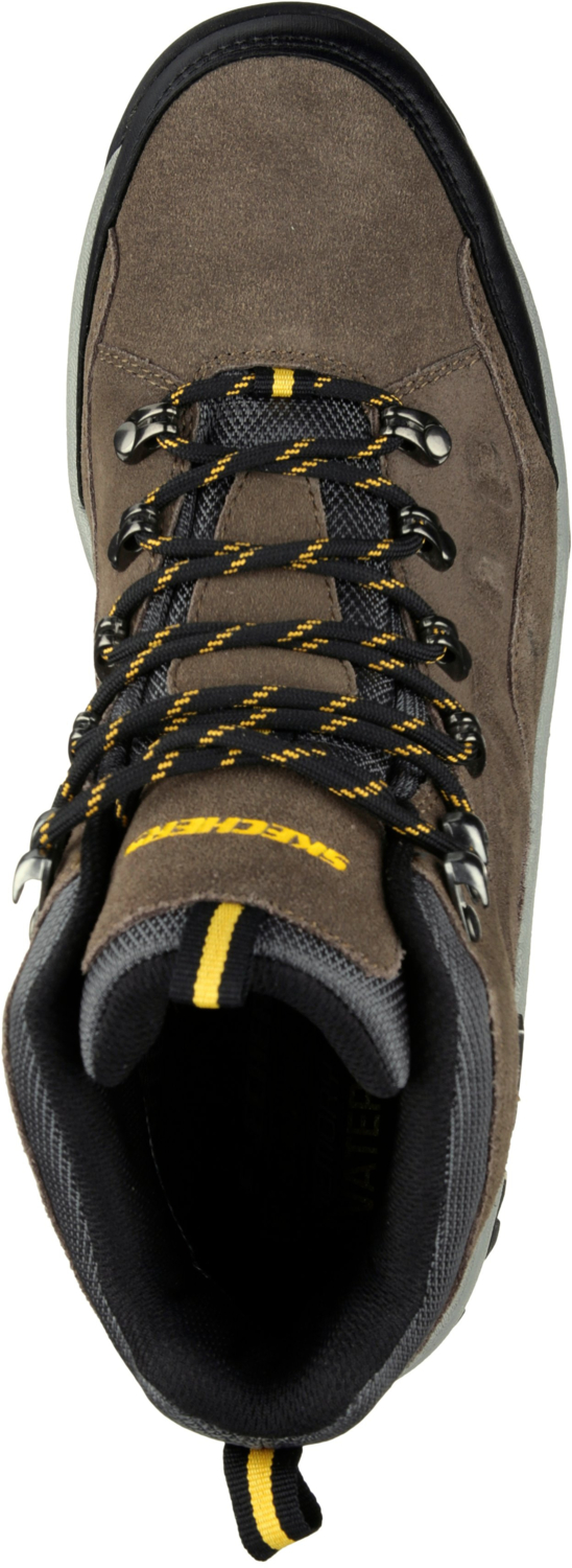 Продолжайте двигаться в любых условиях с комфортом и в прочном стиле в Skechers Relment - Pelmo. Эти шнуруемые походные ботинки имеют водонепроницаемый верх из замши, синтетического материала и сетки с мягкой стелькой Skechers Air-Cooled Memory Foam.