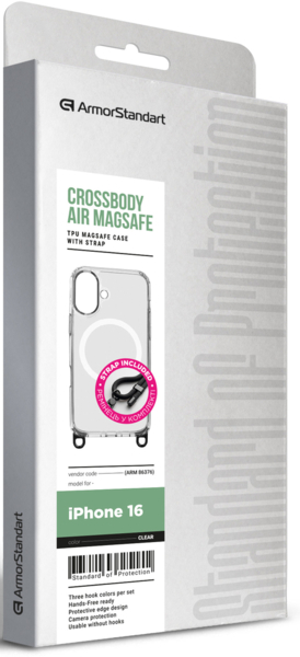 - Чехол ArmorStandart Crossbody Air MagSafe Rope для Apple iPhone 16 Clear (ARM86376)