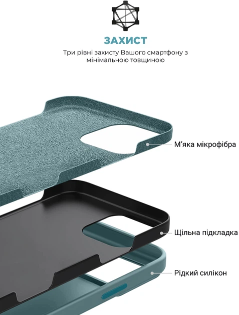 При изготовлении чехла использовались премиальные материалы – Liquid silicone, с Soft Touch покрытием. Мягкая подкладка из премиальной микрофибры надежно защитит ваш гаджет от царапин, грязи и пыли. Чехол имеет ребра жесткости, таким образом телефон защищен со всех сторон. Дополнительным преимуществом является наличие выступающих бортов над дисплеем и наличие дополнительной пластиковой рамки над задней камерой для дополнительной защиты. В панели предусмотрены все необходимые вырезы и кнопки. Также аксессуар не мешает использованию портов и интерфейсов устройства.