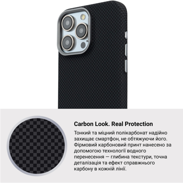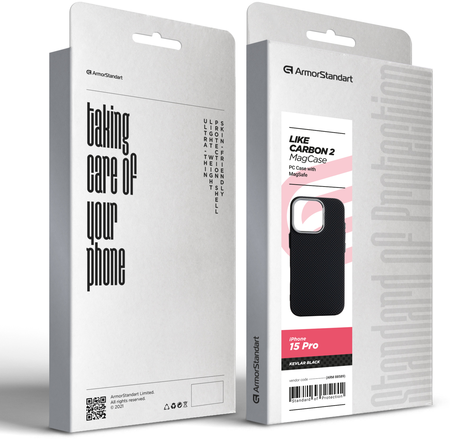 - Чехол ArmorStandart LikeCarbon2 MagCase для Apple iPhone 15 Pro Kevlar Black (ARM88589)