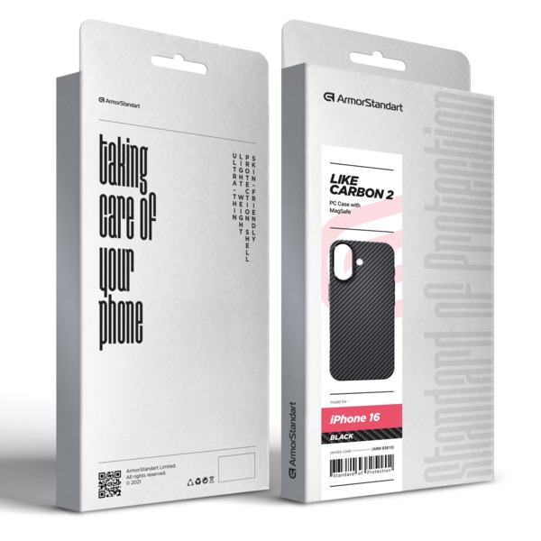 - Чехол ArmorStandart LikeCarbon2 MagCase для Apple iPhone 16 Black (ARM83810)