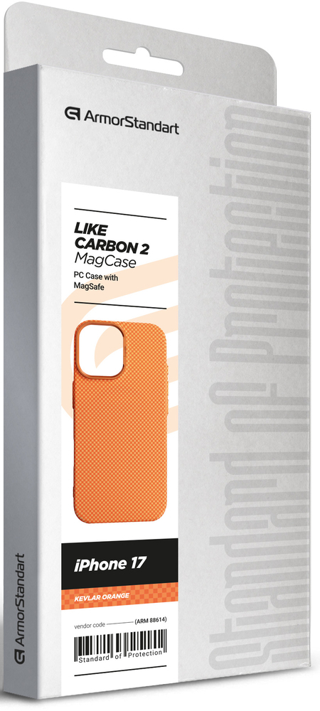 - Чехол ArmorStandart LikeCarbon2 MagCase для Apple iPhone 17 Kevlar Orange (ARM88614)