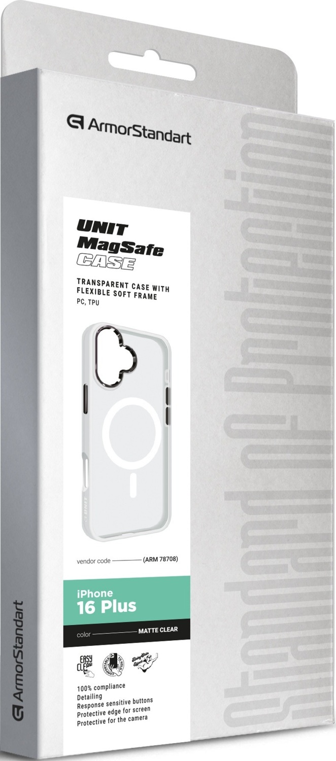 - Чехол ArmorStandart Unit MagSafe для Apple iPhone 16 Plus Matte Clear (ARM78708)