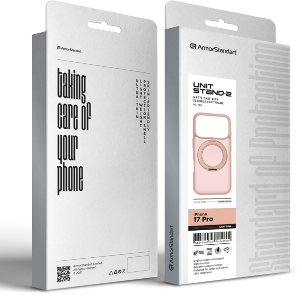 - Чехол ArmorStandart Unit Stand2 для Apple iPhone 17 Pro Light Pink (ARM86334)