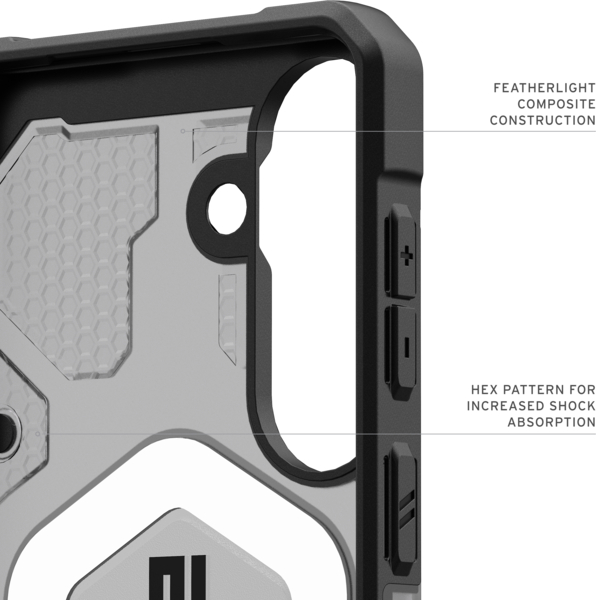 Чехол Pathfinder Clear Case обеспечивает надежную защиту серии Pathfinder и имеет прозрачный дизайн, позволяющий продемонстрировать цвет вашего нового устройства. Он имеет сверхлегкую бронированную оболочку, ударопрочную рамку и сердцевину с шестиугольным узором, что обеспечивает отличную защиту от падений и ударов. Приподнятый периметр экрана защищает дисплей от случайных падений и ударов, а прочные TPU-бамперы обеспечивают дополнительную защиту углов. Наш интегрированный магнитный модуль надежно фиксирует ваше устройство при использовании беспроводных зарядных устройств или других магнитных аксессуаров.