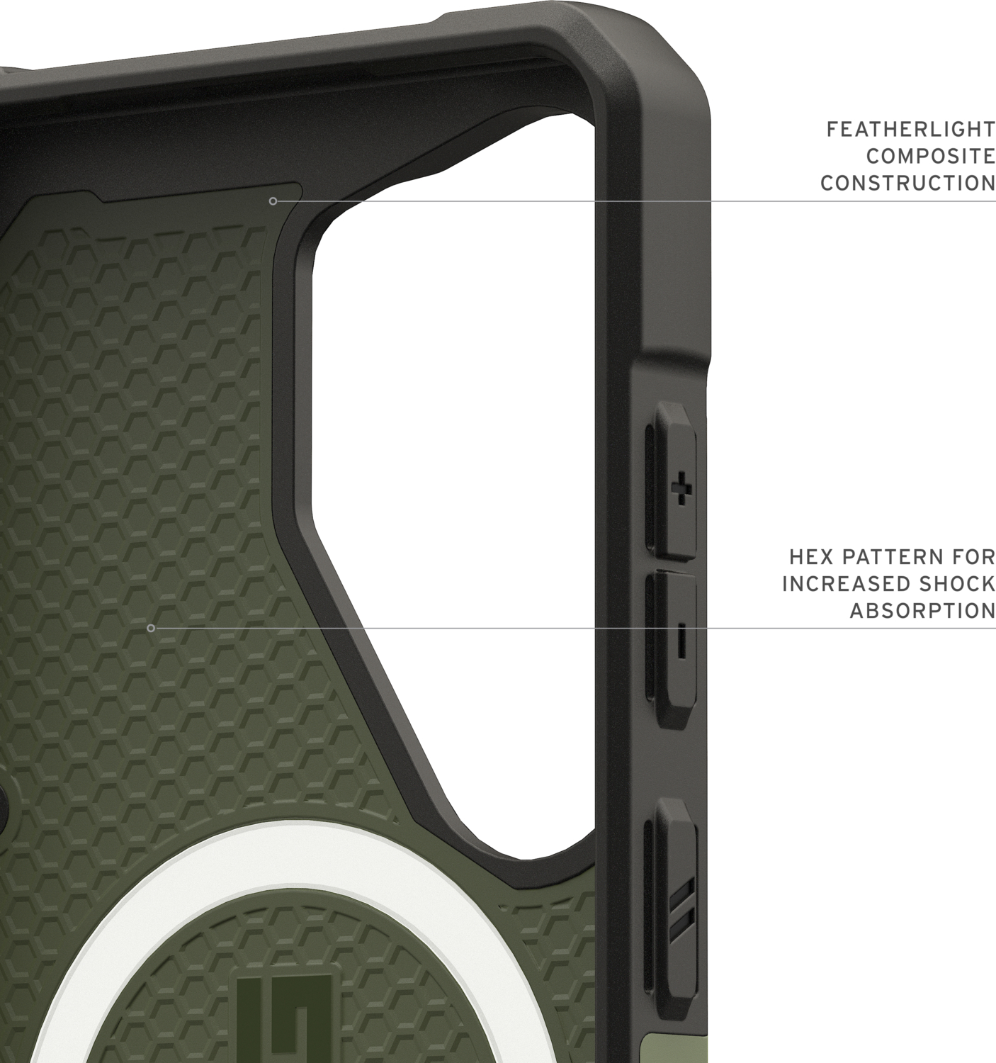 Серия Pathfinder — идеальный чехол для тех, кто ищет прочную защиту для своего Samsung Galaxy S26 Ultra, готового к приключениям. Этот чехол сочетает в себе сверхлегкую бронированную оболочку с ударопрочной рамой и сердцевиной с шестиугольным узором, что обеспечивает отличную защиту от падений и ударов. Приподнятая рамка экрана защищает дисплей от случайных падений, а прочные TPU-бамперы обеспечивают дополнительную защиту углов. Наш интегрированный магнитный модуль надежно фиксирует устройство при использовании беспроводных зарядных устройств или других магнитных аксессуаров.