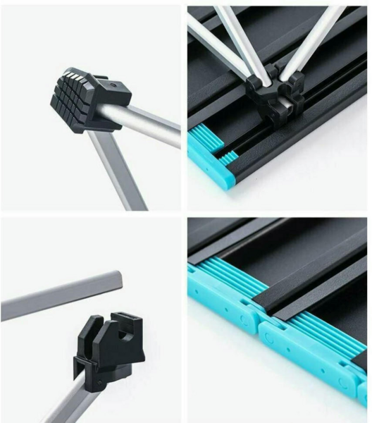 Модель имеет складную конструкцию. В ее производстве использован алюминиевый сплав, который отличается легкостью и устойчивостью к износу, позволяя столу выдерживать нагрузку до 25 кг. Кроме того, алюминий демонстрирует невосприимчивость к появлению ржавчины и неприхотливость в уходе - после использования достаточно протереть столешницу чистой тряпкой, чтобы устранить капли жира и жидкости с металлической поверхности. Он поставляется в фирменном чехле, который защищает изделие от негативного воздействия влаги и появления царапин во время транспортировки и хранения.