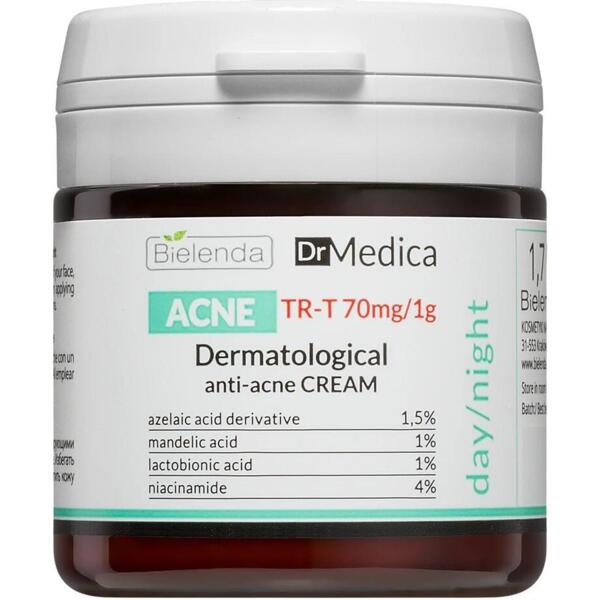 Дерматологический анти-акне крем от Bielenda разработан для ухода за проблемной кожей, склонной к акне и себорее. Средство подходит для комбинированного и жирного типа кожи, так как именно они из-за чрезмерной работы сальных желез чаще сталкиваются с высыпаниями, воспалениями и раздражениями. Формула крема обогащена антибактериальными и отшелушивающими кислотами, а также успокаивающими компонентами, которые восстанавливают баланс и гармонию кожи. Крем нормализует работу сальных желез, очищает и сужает поры, уменьшает жирный блеск, обеспечивая матовый финиш. При этом дерматологическое средство поддерживает оптимальный уровень увлажнения, что минимизирует дискомфорт.
