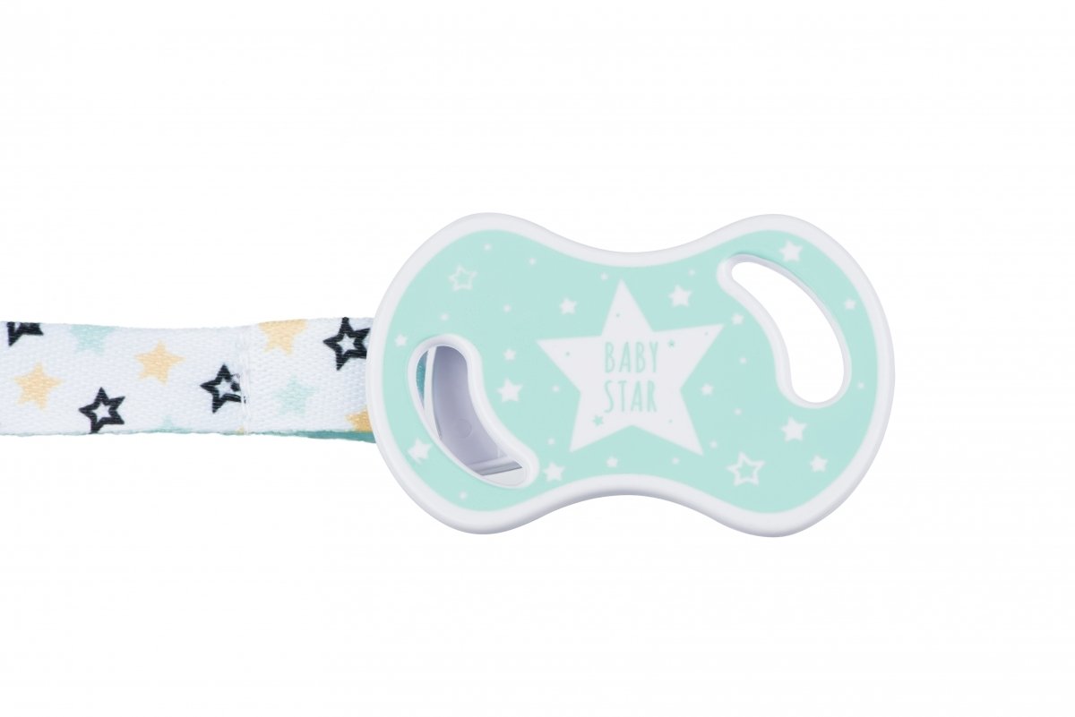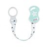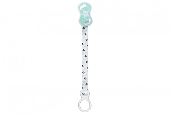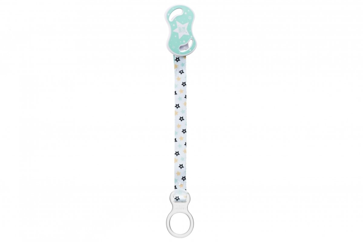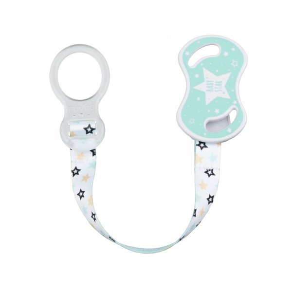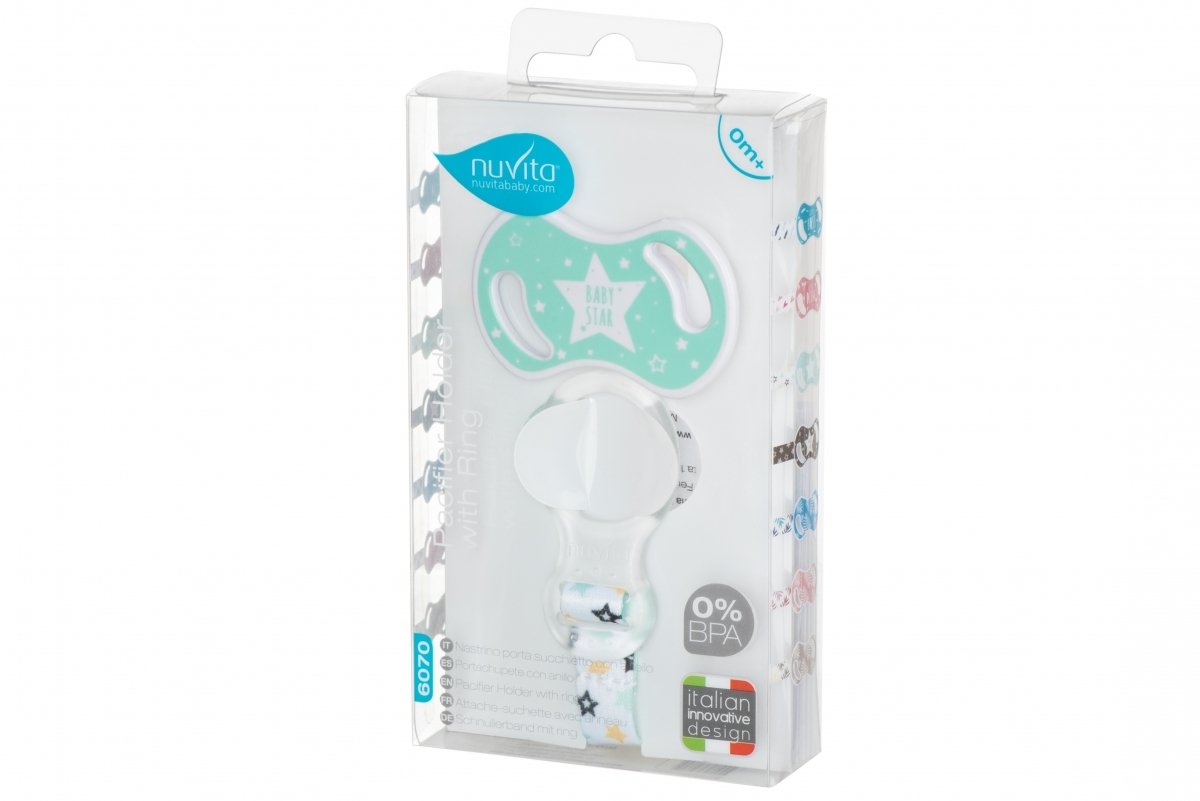 Держатель для пустышки с кольцом от итальянского бренда Nuvita, который можно использовать для младенцев с самого рождения. Подходит для пуговиц-пустышек. Держатель очень удобный и состоит из кольца и фиксатора, которые изготовлены из пластика, и текстильной ленты с узором. Безопасный и простой фиксатор крепится по принципу прищепки и не оставляет никаких следов на детской одежде. Благодаря держателю для пустышки от Nuvita малыш не потеряет но не испачкает пустышку, ведь она всегда будет надежно закреплена.