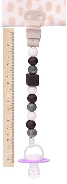 Держатель для пустышки Nattou многофункциональный, помимо держания пустышки он также выступает в роли успокаивающей игрушки. Внешний вид очень привлекает ребенка, ибо напоминает вид конфеток, да и из-за любопытности попробовать на вкус надо. Все детальки сделаны из силикона, их спокойно можно покусать и вреда это не принесет. Оптимальная длина, пустышка не весит в ногах, но при этом ей удобно пользоваться.