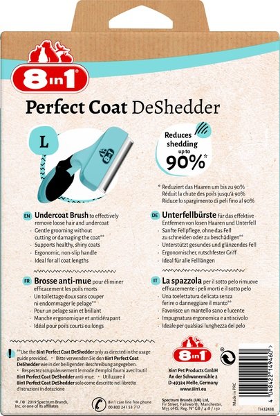 8in1 Perfect Coat DeShedder L – это эффективное вычесывание подшерстка и бережный уход за большими породами собак. Perfect Coat DeShedder уменьшает линьку до 90%, что делает его идеальным решением для уменьшения количества шерсти домашних питомцев в вашем доме. Использование этого инструмента обеспечивает здоровую и блестящую шерсть. Эргономичная нескользящая ручка делает его безопасным в использовании. Perfect Coat DeShedder нужен не только в сезон линьки. Регулярный уход необходим, чтобы шерсть вашей собаки не спутывалась и на коже не было воспалений. Точные инструкции по использованию 8in1 Perfect Coat DeShedder можно найти на упаковке. Правильный уход за шерстью вашего питомца полезен как для любимца, так и для вашего уюта в доме.