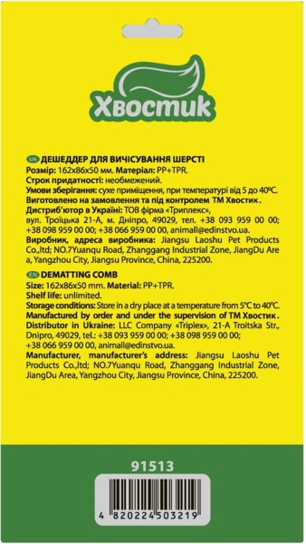 - Дешедер Хвостик для вычесывания шерсти
