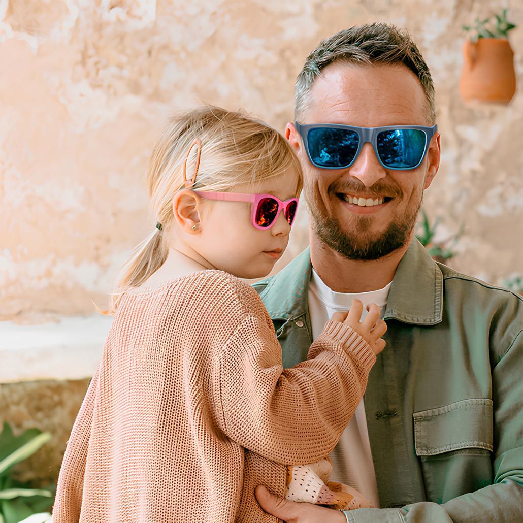 Поляризованные солнцезащитные очки для детей 24-36 месяцев, удобные, гибкие и очень легкие! Эргономичная форма и специальная посадка. К ним прилагается футляр, чтобы сохранить их в идеальном состоянии. Идеально подходят для того, чтобы позаботиться о самочувствии малыша летом.