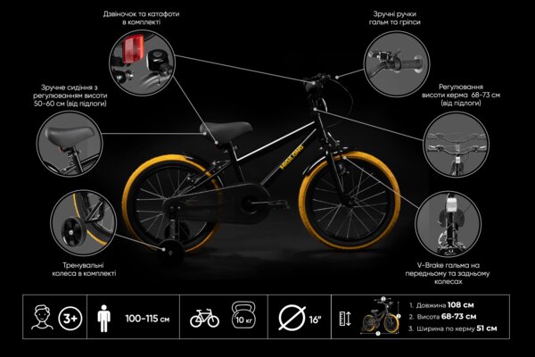 Детский велосипед Miqilong ST Черный 16` ATW-ST16-BLACK