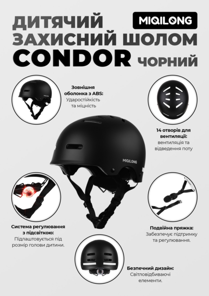 Обеспечьте максимальную защиту вашего ребенка во время активных игр и катания на велосипеде, самокате, скейте или роликовых коньках с детским шлемом цвета Miqilong Condor. Безопасность вашего ребенка - безусловный приоритет, и именно поэтому этот шлем для ребенка разработан с учетом всех самых современных стандартов безопасности.