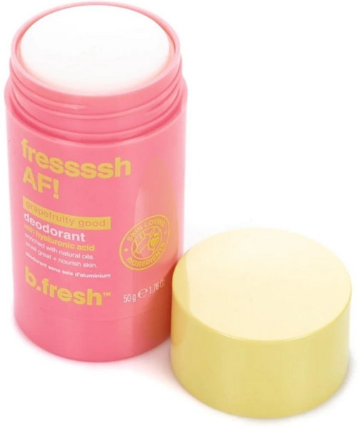 С первых секунд, когда вы коснетесь дезодоранта b.fresh Fressssh AF Grapefruity Good, вас обнимает волна свежести. Будто капли солнечного света падают на спелый грейпфрут, высвобождая его цитрусовый, сочный аромат и заряжая энергией на весь день. Продукт не содержит спирта, парабенов и солей алюминия.