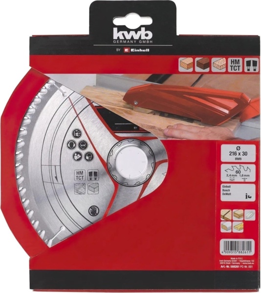 - Диск пильный TCT KWB для торцевой пилы Einhell, 216х30 мм, 60 зубьев