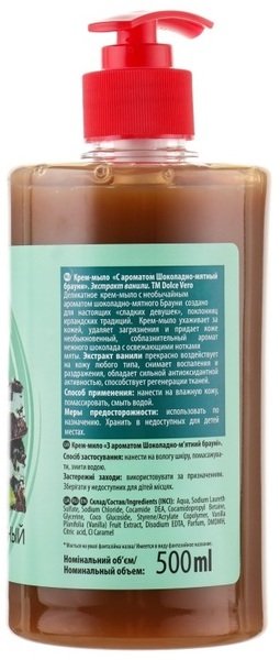 - Жидкое мыло Dolce Vero Шоколадно-мятный брауни 500 мл