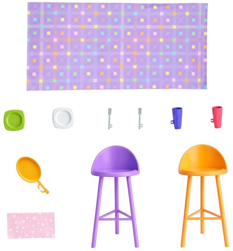 В домике есть кухня с выдвижным столом, ванная комната, спальня на втором этаже и уютный лаунж для просмотра фильмов и игр! Дети могут собрать разных кукол Barbie и домашних животных (продаются отдельно) и придумывать разные интересные сюжеты. После окончания игры весь набор можно легко собрать для удобного и компактного хранения.